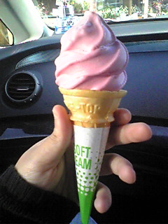 今日は親戚宅へ行く途中道の駅によって桃ソフト食べたv